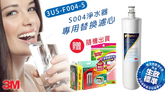 3M-S004淨水器專用替換濾心(3US-F004-5),好禮加碼送(隨機出貨):【3M】17650G 無痕廚房收納-菜瓜布收納架小綠促銷包或【3M】8001廚房擦拭布" 討論,推薦,開箱,CP值,熱賣,團購,便宜,優惠,介紹,排行,精選,特價,周年慶,體驗,限時