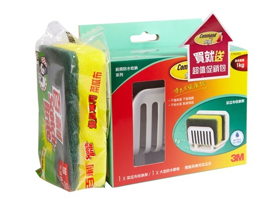 好禮加碼送(隨機出貨):【3M】17650G 無痕廚房收納-菜瓜布收納架小綠促銷包或【3M】8001廚房擦拭布!